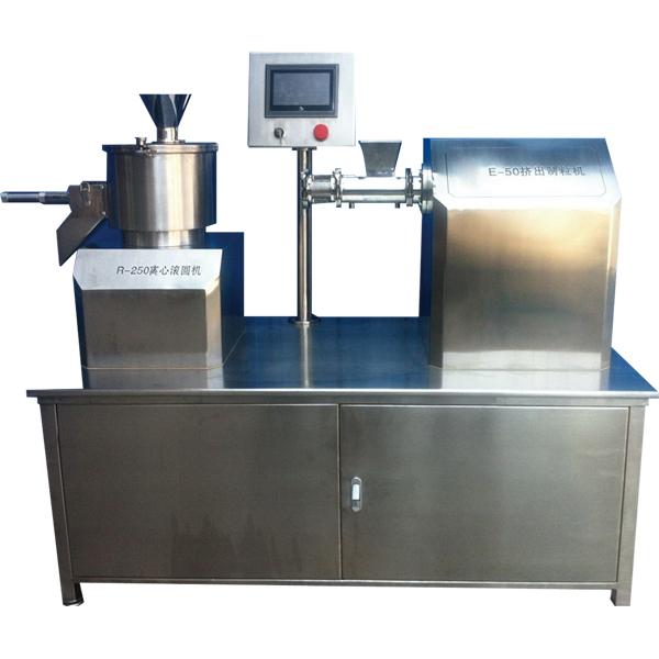 用擠出滾圓機制造微丸的設備包括擠出制條機和離心滾圓機。